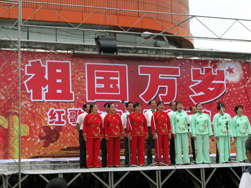 马鞍山阌家山社区干部和老年学校学员一起唱红歌 |