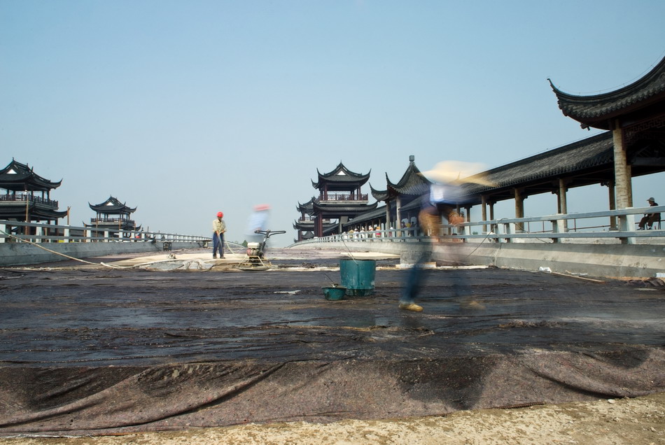 建设中的采石河桥 |